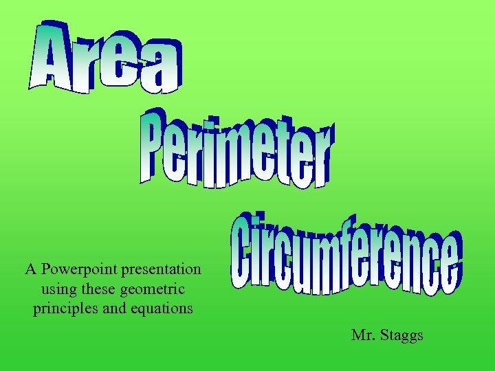 A Powerpoint presentation using these geometric principles and equations Mr. Staggs