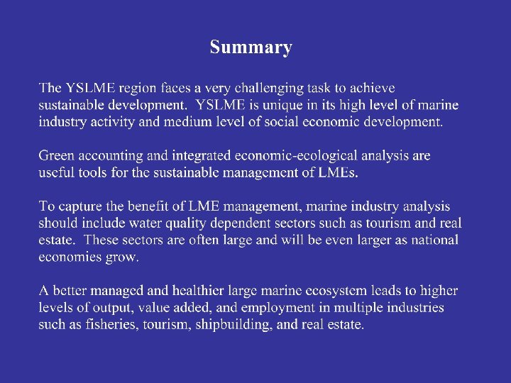 Research Team Porter Hoagland (WHOI) Di Jin (WHOI) Tracey Dalton (URI) Eric Thunberg (NOAA) Scott Steinback (NOAA) Mary Schumacher (WHOI) Roger Goldsmith (WHOI) Jennifer Skilbred (Duke U. ) Chris Vonderweidt (Duke U. ) Sukjae Kwon (KORDI) Yumi Kim (KORDI) Benrong Peng (Xiamen U. ) Huasheng Hong (Xiamen U. ) Xiongzhi Xue (Xiamen U. ) Publications Hoagland, P. and D. Jin. 2006. Accounting for Economic Activities in Large Marine Ecosystem and Regional Seas. UNEP Regional Seas Reports and Studies No. 181. ISBN: 978 -92 -807 -2748 -7. United Nations Environment Programme, GPA Coordination Office, Hague, The Netherlands. Jin, D. , P. Hoagland T. M. Dalton. 2003. Linking economic and ecological models for a marine ecosystem. Ecological Economics 46(3): 367 -385. Hoagland, P. , D. Jin, E. Thunberg and S. Steinback. 2005. Economic activity associated with the Northeast Shelf Large Marine Ecosystem: application of an input‑output approach. Pages 157 -179 in T. Hennessey and J. Sutinen, eds. Sustaining Large Marine Ecosystems: The Human Dimension. Elsevier Science. Peng, B. , H. Hong, X. Xue and D. Jin. 2006. On the measurement of socioeconomic benefits of integrated coastal management (ICM): application to Xiamen, China. Ocean and Coastal Management 49(3 -4): 93109.