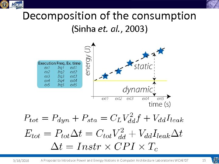 Decomposition of the consumption (Sinha et. al. , 2003) 3/18/2018 A Proposal to Introduce Power and Energy Notions in Computer Architecture Laboratories WCAE'07 15