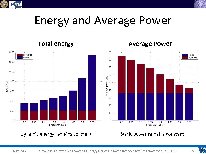 Dynamic and Static power Dynamic 3/18/2018 Static A Proposal to Introduce Power and Energy Notions in Computer Architecture Laboratories WCAE'07 14