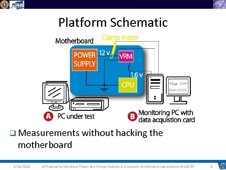 Platform Schematic q Measurements without hacking the motherboard 3/18/2018 A Proposal to Introduce Power and Energy Notions in Computer Architecture Laboratories WCAE'07 9