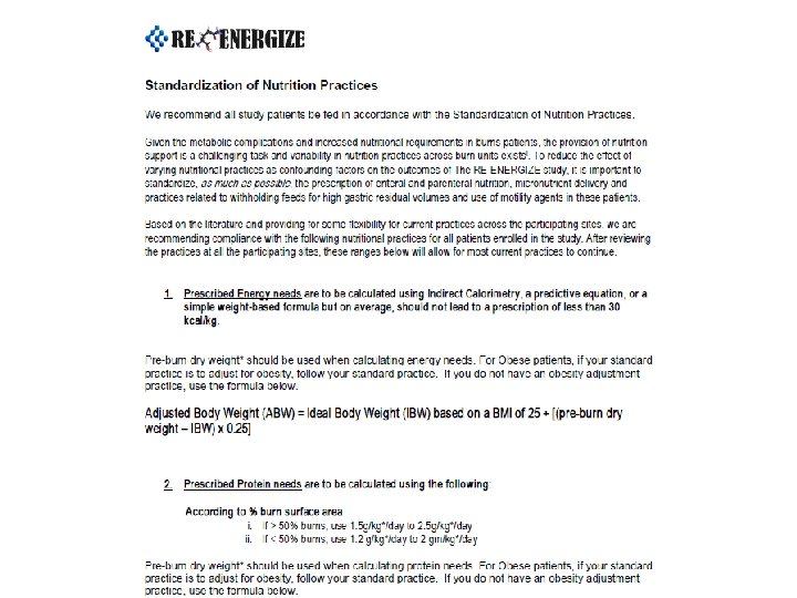 Conclusions • RE-ENERGIZE trial – Will ask a clinically important question – Has the potential to save lives and reduce morbidity whether positive or negative – Largest burn trial ever! • Thank you for your interest and support