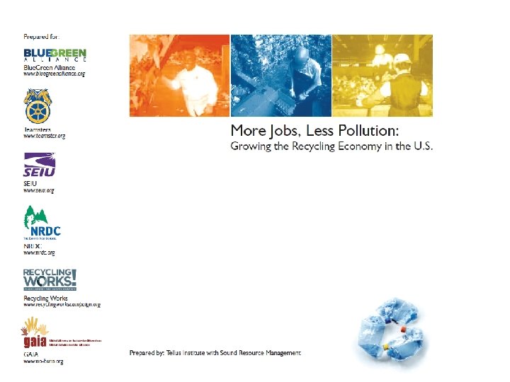 Job Production Estimates by Management Activity for MSW DIVERTED WASTE DISPOSED WASTE Manufacturing Reuse/ Remanufacture Incineration Jobs per 1000 tons Paper & Paperboard 4. 16 N/A 0. 10 Plastics 10. 30 20. 00 0. 10 Rubber & Leather 9. 24 7. 35 0. 10 MATERIALS Tellus Institute, “More Jobs, Less Pollution Report”, November 2011, page 34