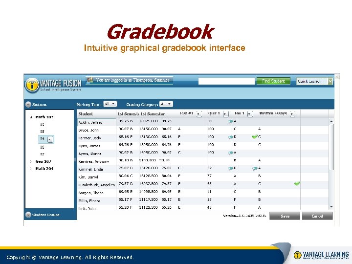 Gradebook Intuitive graphical gradebook interface Copyright © Vantage Learning. All Rights Reserved.