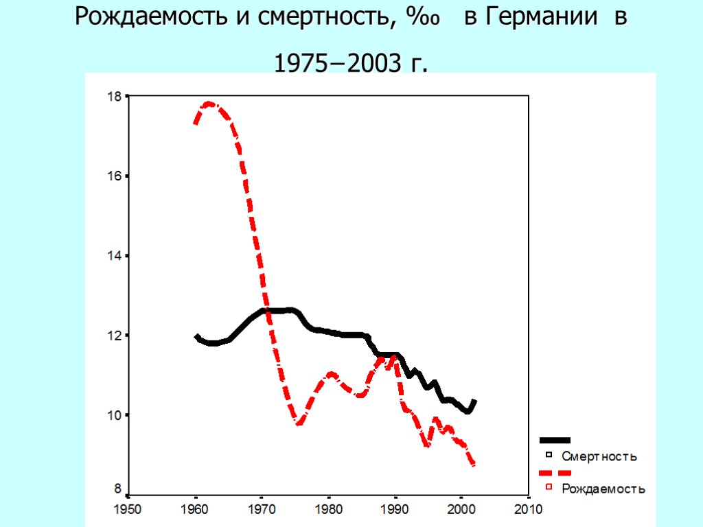 Рождаемость и смертность, ‰ в Германии в 1975−2003 г.