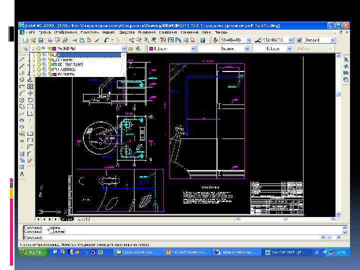 Автоматизация проектирования при использовании 2 D пакетов Специальные команды позволяют измерять различные геометрические характеристики (координаты, длину, периметр, площадь, объем и т. п. ) 2 D-объектов, а также отношения (расстояние, угол и т. п. ) между двумя объектами. В результате измерений может быть автоматически создана новая переменная или изменено значение уже существующей. В чертеж можно вставить векторные или растровые изображения в форматах: BMP (Windows Bitmap), JPEG (Joint Photographic Experts Group), GIF (Graphic Interchange Format), DIB (Device-independent bitmap), а также изображения форматов TIFF, PCX, TGA. Изображения могут быть вставлены с различным масштабом, под разным углом и привязаны к узлам, что позволяет параметрически задать их положение на чертеже.