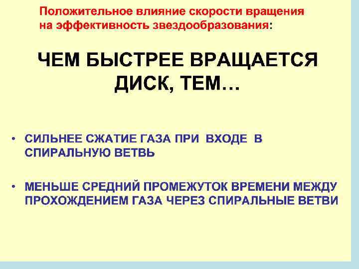 Кинематические особенности диска определяют Условия образования звезд üСжатие газа в спиральных волнах плотности ü Развитие крупномасштабной гравитационной неустойчивости газового слоя ü Толщина звездного, а, следовательно, и газового диска