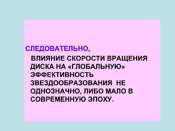 Темпы звездообразования в первую очередь зависят от плотности газа. • А как обстоит дело с эффективностью звездообразования? Какие факторы его определяют? • Это – ключевой вопрос в изучении рождения звезд в галактиках