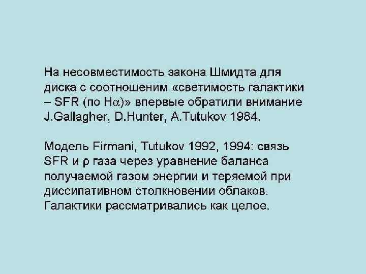 Три понятия эффективность звездообразования • SFE – доля массы молекулярного облака, превращающейся в звезды за время его жизни (безразмерная величина, несколько %) • SFE – темп звездообразования в расчете на единицу массы молекулярного облака около (10 -9 лет-1 ) • SFE – темп звездообразования в расчете на единицу полной массы газа (10 -9 – 10 -10 лет-1) Не путать их!