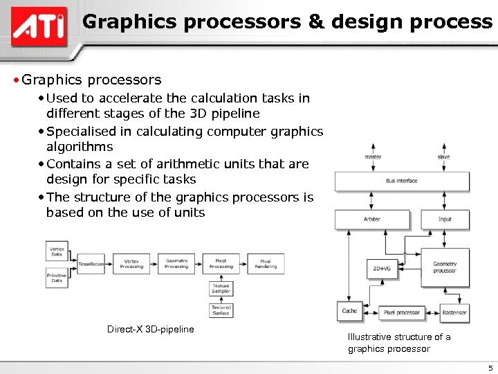 Graphics processors & design process • Graphics processors • Used to accelerate the calculation tasks in different stages of the 3 D pipeline • Specialised in calculating computer graphics algorithms • Contains a set of arithmetic units that are design for specific tasks • The structure of the graphics processors is based on the use of units Direct-X 3 D-pipeline Illustrative structure of a graphics processor 5