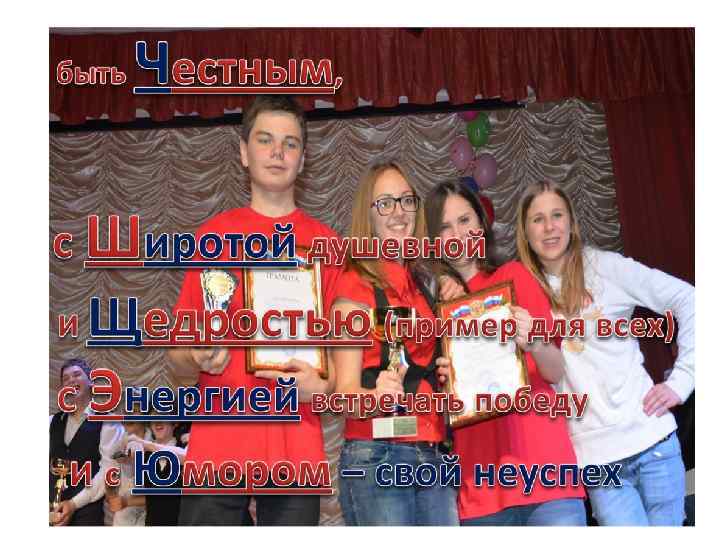 Цель: создание активной среды творческой практической деятельности детей и подростков задачи Воспитание здоровых граждан России, обладающих активной жизненной позицией отстаивающих моральные принципы, принятые в обществе. Объединение Приобретение опыта Выращивание активистов, сотворчества, новых учеников совместной молодежных классных социальной «групп влияния» коллективов практики и внедрение их в единый учеников разных в школьный творческий возрастных образовательный групп; процесс. союз