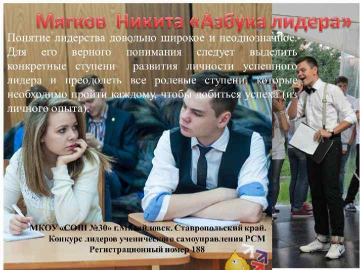 Это россиянин, законопослушный гражданин своего Отечества, т. е. человек, ощущающий и переживающий ответственность за состояние того общества , в котором он живет. Это гражданин маленькой Родины, той земли и традиций, в которых он родился и живет. Это ученик средней школы № 30, следовательно, гражданин ее, признает Устав и стиль жизни этой школы. Это неповторимая индивидуальность, которая живет в своем мире, реализует себя в различных социальных ролях.