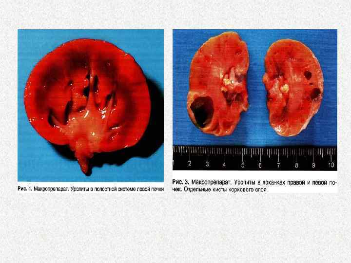 Жалпы лабораториялық анализ • Жалпы қан анализі(Лейкоцитоз, эритроцитоз, кристалды тұздар) • Биохимиялық қан анализі(Калий концентрациясының артуы, зәр қышқылы, бейорганикалық фосфор, магнидың анықталады, бұлардың жоғарылауы зат алмасу бұзылғандығын көрсетеді) • Биохимиялық зәр талдауы (Зәрде әртүрлі тұздардың болуы, аминокислоталардың болуы)