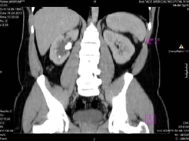 Бүйректі ультрадыбысты зерттеу. Бүйректегі тастар. Компьютерлі томограмма. Оң жақ бүйректегі тастар.