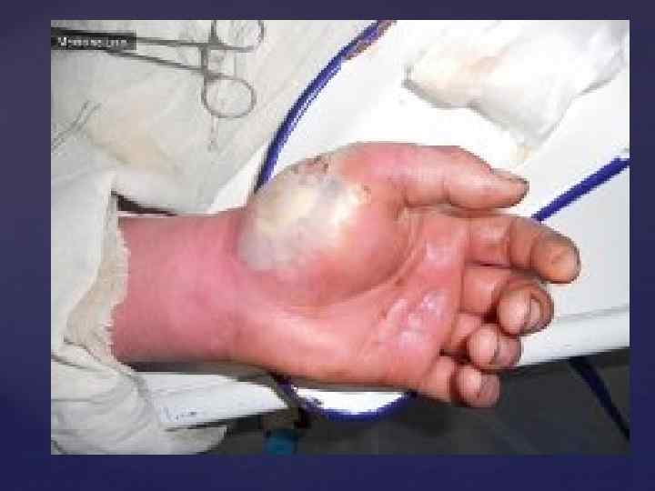 Ауруға тән белгілер 1. Саусақтары ісінеді. 2. Саусақтардың қимыл қозғалысы шектеледі. 3. Бүгіп жазылу қиындайды. 4. Қатты ауру сезімі пайда болады.