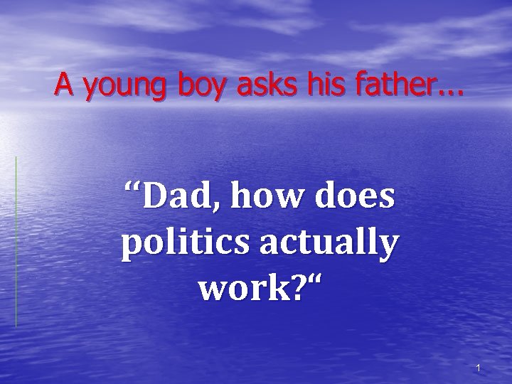 A young boy asks his father. . . ‘‘Dad, how does politics actually work? “ 1