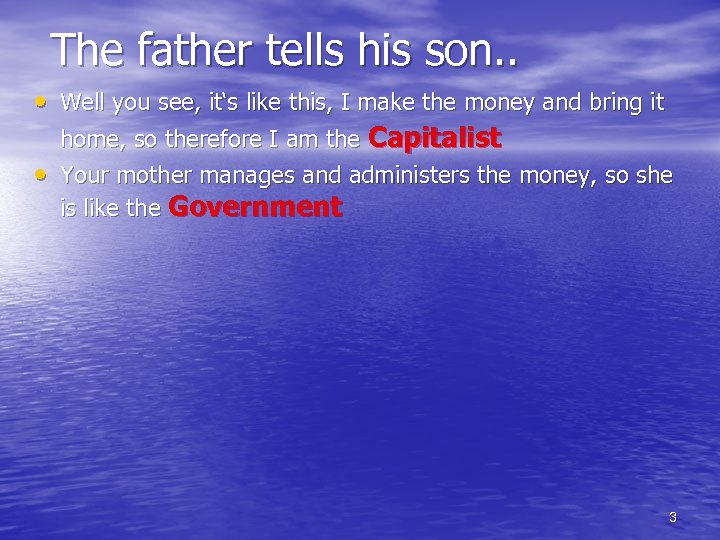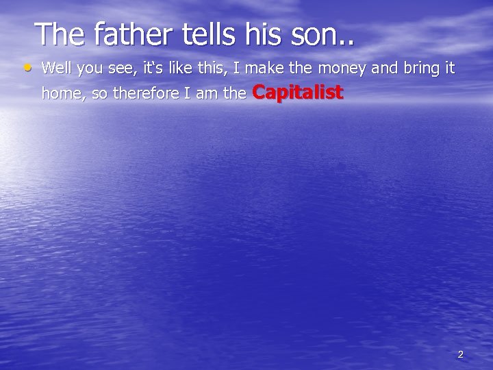 The father tells his son. . • Well you see, it‘s like this, I make the money and bring it home, so therefore I am the Capitalist 2