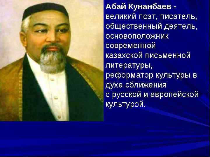 • Абай не писал специальных философских и педагогических трудов, но почти все без исключения произведения пламенного наставника молодёжи пронизаны нравственноэтическими назиданиями, опирающимися на интересы, нравственные идеалы и мудрость трудового народа, на творчество казахской народной интеллигенции – акынов и композиторов, на достижения общественной мысли народов Востока и Запада.