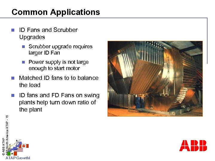 Fans Chimney Boiler Cooling tower fan © ABB ATAP ABB North America ATAP - 13 Desulfurization ATAP Growth! Electric precipitator ID Fan Primary fan Air preheater Secondary fan