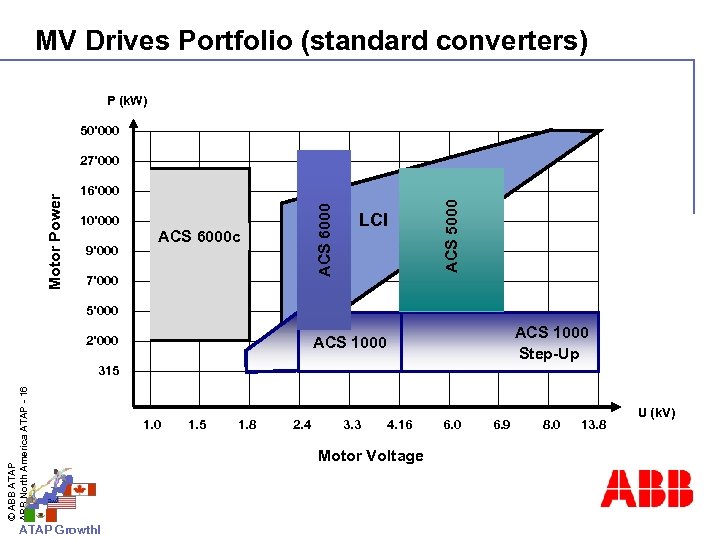 MV Drives Portfolio (standard converters) P (k. W) 50’ 000 10’ 000 9’ 000 ACS 6000 c 7’ 000 LCI ACS 5000 16’ 000 ACS 6000 Motor Power 27’ 000 5’ 000 2’ 000 ACS 1000 Step-Up ACS 1000 © ABB ATAP ABB North America ATAP - 16 315 ATAP Growth! 1. 0 1. 5 1. 8 2. 4 3. 3 4. 16 Motor Voltage 6. 0 6. 9 8. 0 13. 8 U (k. V)