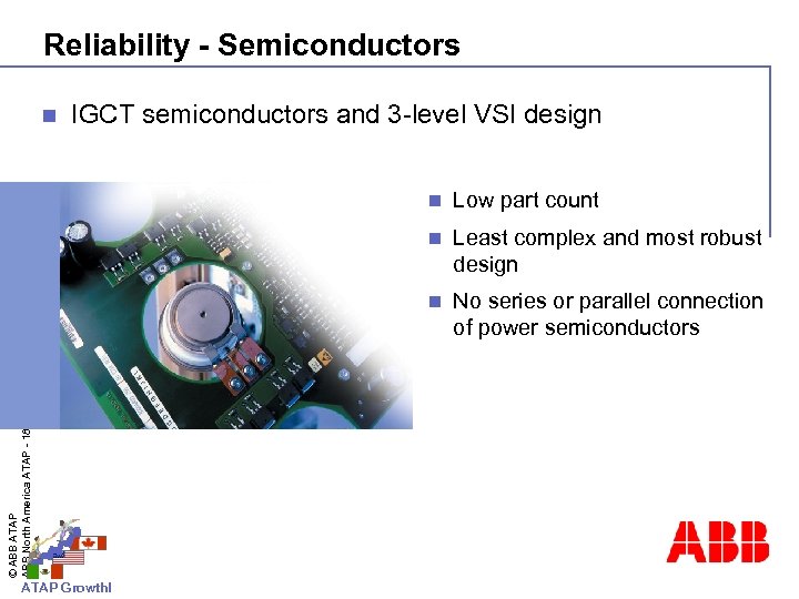 Reliability - Semiconductors n IGCT semiconductors and 3 -level VSI design Least complex and most robust design n ATAP Growth! Low part count n © ABB ATAP ABB North America ATAP - 18 n No series or parallel connection of power semiconductors