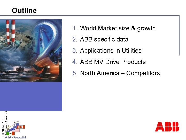 Outline 1. World Market size & growth 2. ABB specific data 3. Applications in Utilities 4. ABB MV Drive Products © ABB ATAP ABB North America ATAP - 2 5. North America – Competitors ATAP Growth!