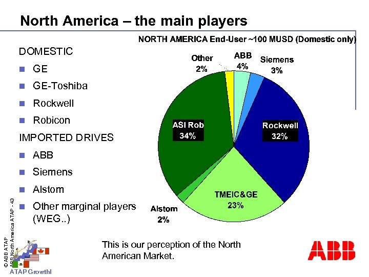 North America – Sales Channel values DOMESTIC n GE-Toshiba n Rockwell n Robicon IMPORTED DRIVES ABB n Siemens n © ABB ATAP ABB North America ATAP - 42 n Alstom n Other marginal players (WEG. . ) ATAP Growth! This is our perception of the North American Market.