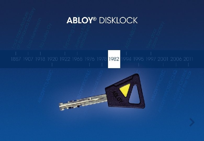 Уникальный механизм цилиндра ABLOY® Уникальный механизм вращающихся дисков ABLOY® является символом высочайшей безопасности и превосходной работы, начиная с даты его изобретения. Являясь мировым лидером в разработке технологии вращающихся дисков, компания Abloy постоянно совершенствует свою продукцию.