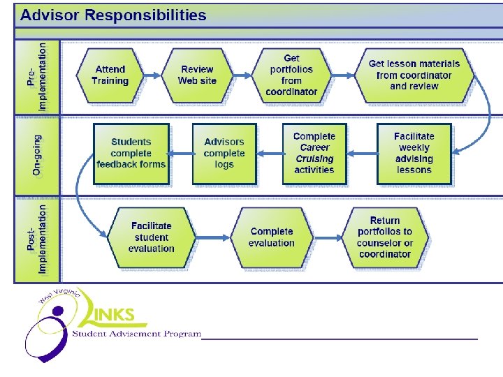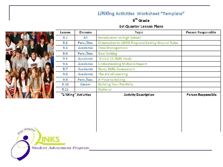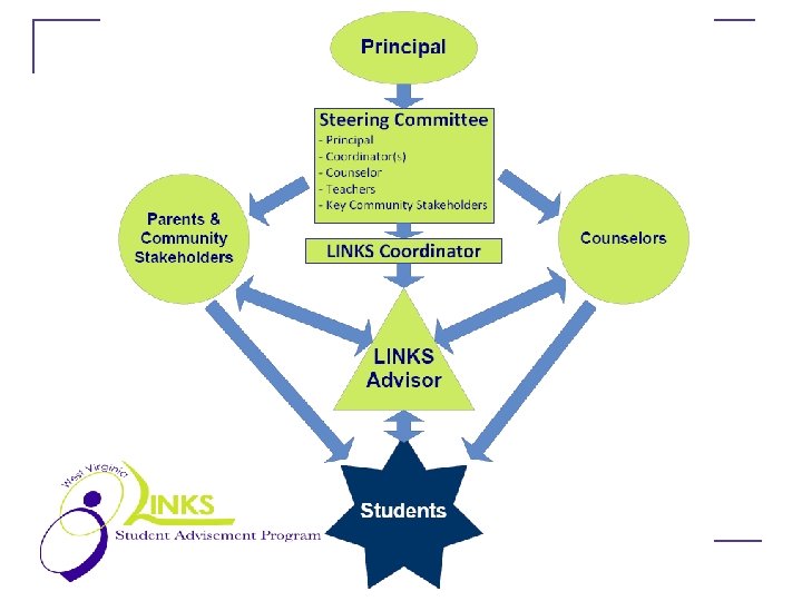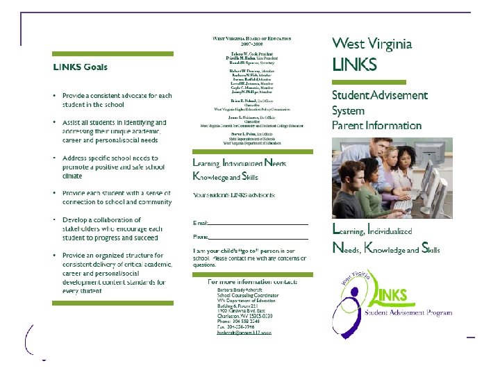About LINKS … web-based framework and curriculum for student advisement programs (Advisor/Advisee) in West Virginia designed to advance student learning and development in a deliberate, proactive, manner to encourage individual success