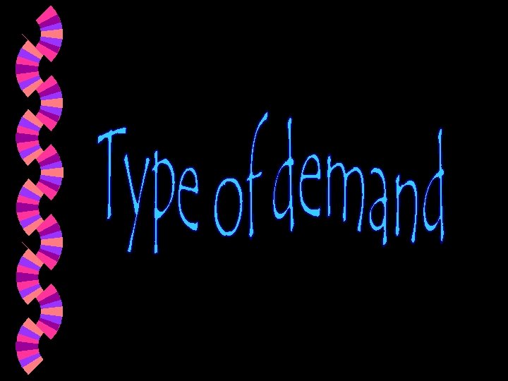 C) Derived demand (the demand for factor of production is derived demand of the product) e. g. bread and flour When demand for bread increases, the demand for flour will also increases. The demand for flour is in fact derived from the demand for bread. Thus , the demand for flour is known as derived demand. P P bread flour D 0 D 1 Q