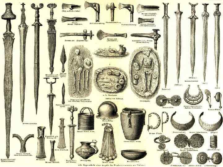 Железный век (I тыс. до н. э. - ) ЗАПАДНАЯ ЕВРОПА ВОСТОЧНАЯ Доримский ЕВРОПА Ранний железный век ( с IX-VIII вв. до н. э. ) железный век: Гальштатт (Hallstatt) 800 - 500 Скифский период (VII- IV) Латен (La Tene) 500 -0 Сарматский период (III в до н. э. – IV в. н. э. )