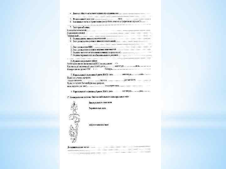 Клинический пример Мужчина, 27 лет, бармен Жалобы пациента на утомляемость, астению, сонливость, головные боли к концу рабочего дня, периодические боли в области сердца, (не связаны с физической и эмоциональной нагрузками), боли в пояснице. В анамнезе около года назад падение на спину при катании на сноуборде.