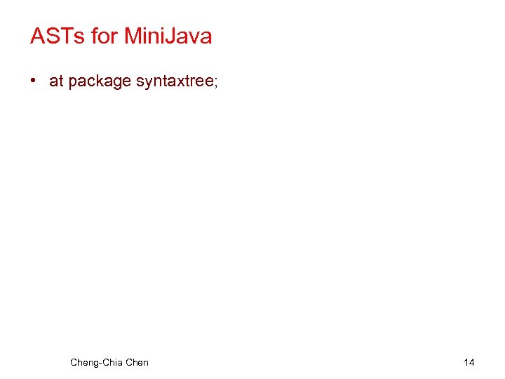 ASTs for Mini. Java • at package syntaxtree; Cheng-Chia Chen 14