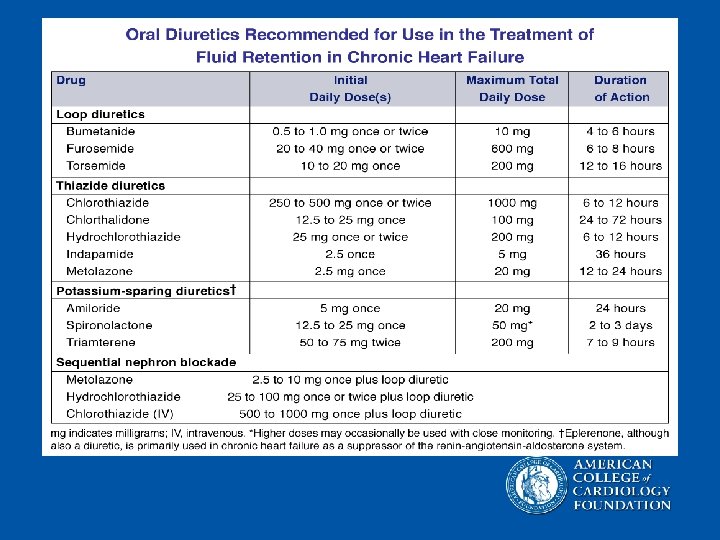 Стадия С: Терапия (Нормальная ФВ + симптомы) Диуретики Необходимо использовать диуретики для контроля застоя в малом круге и для профилактики периферических отёков
