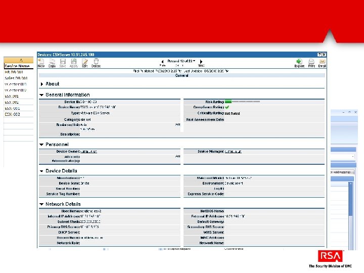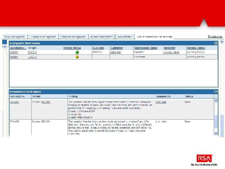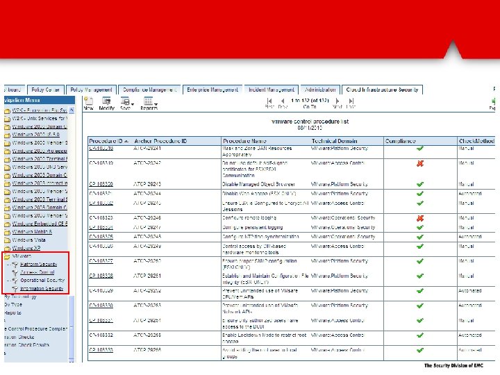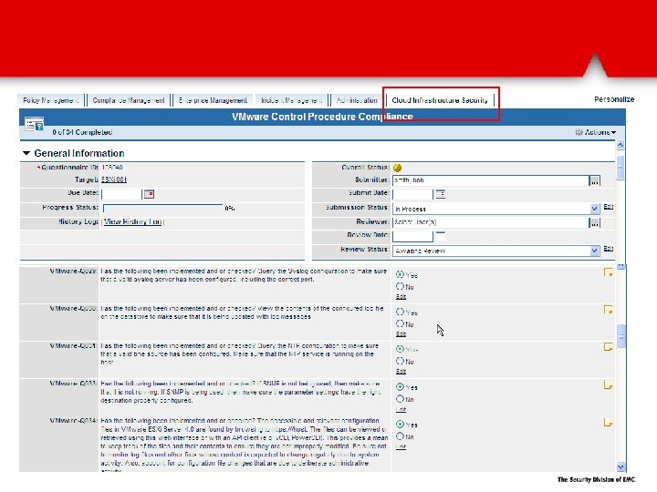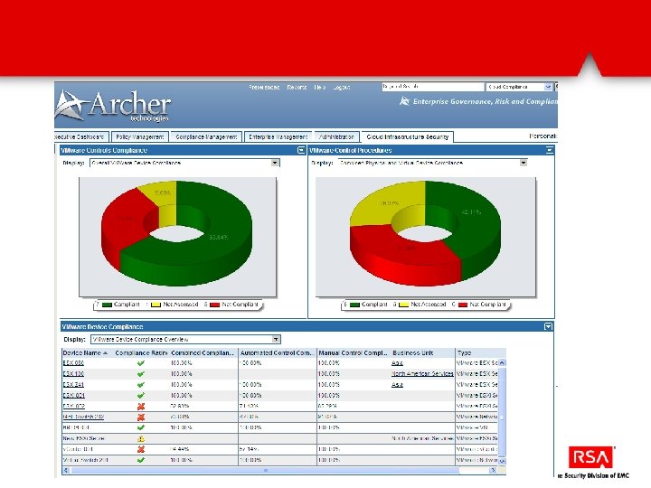 Automatically discover and assess VMware infrastructure via Power. CLI VMware objects (ESX, v. Switches, etc…) are automatically populated into Archer They are then mapped to control procedures. Over 40% are automatically assessed via Power. CLI and the results fed into Archer for reporting and remediation.