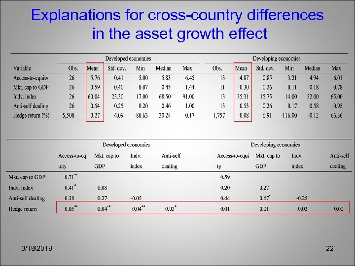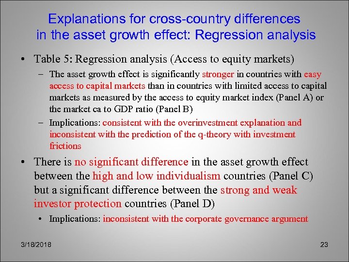 Explanations for cross-country differences in the asset growth effect 3/18/2018 22