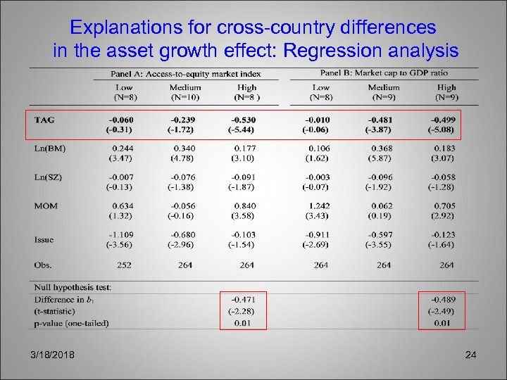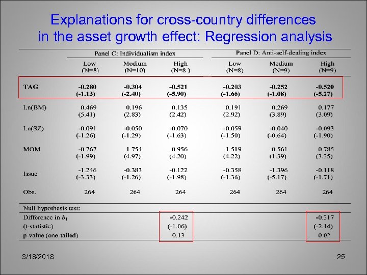 Explanations for cross-country differences in the asset growth effect: Regression analysis 3/18/2018 24