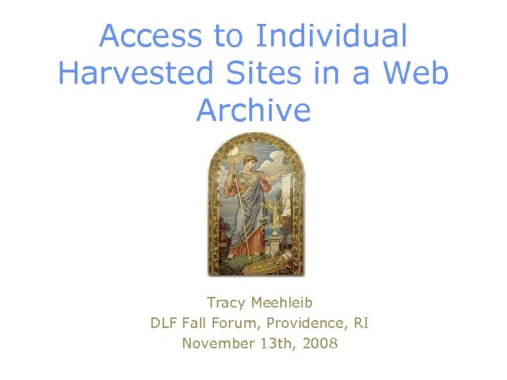 Access to Individual Harvested Sites in a Web Archive Tracy Meehleib DLF Fall Forum, Providence, RI November 13 th, 2008