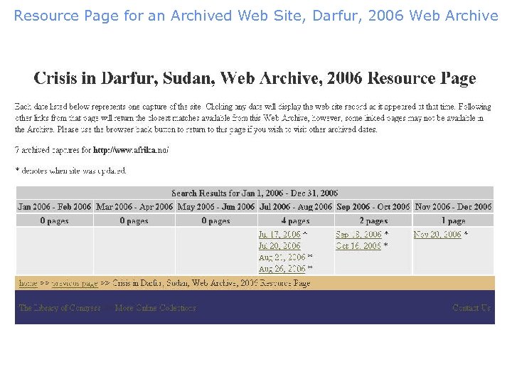 Resource Page for an Archived Web Site, Darfur, 2006 Web Archive