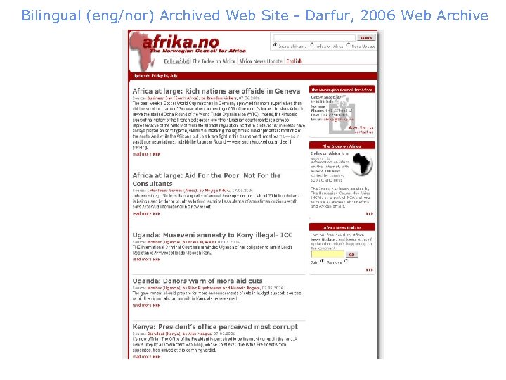 Bilingual (eng/nor) Archived Web Site - Darfur, 2006 Web Archive