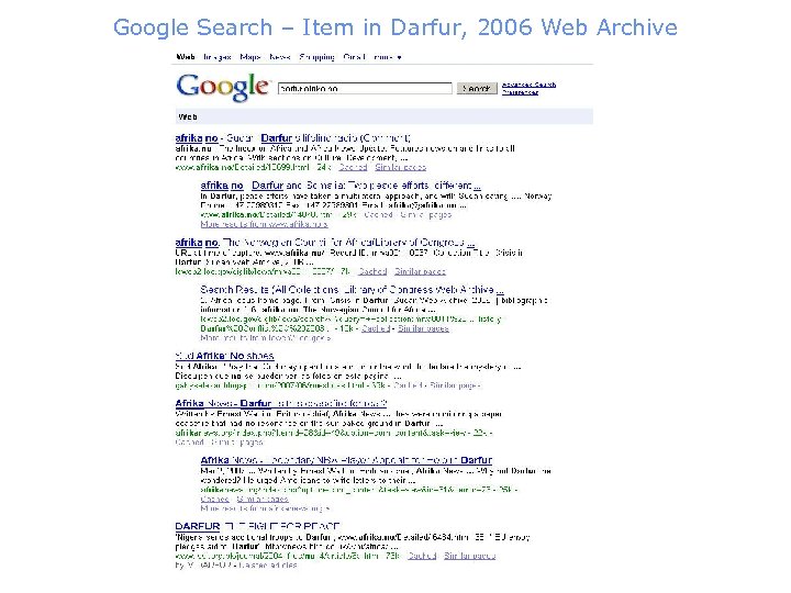 Google Search – Item in Darfur, 2006 Web Archive