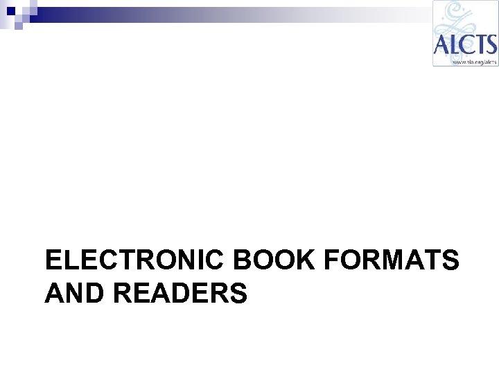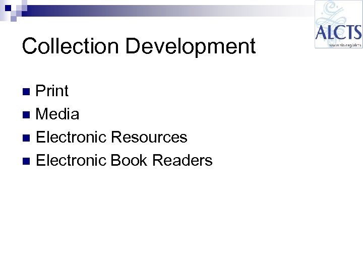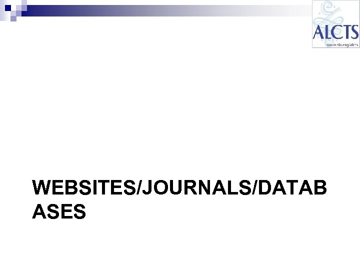 Hosted by ALCTS The Association for Library Collections and Technical Services