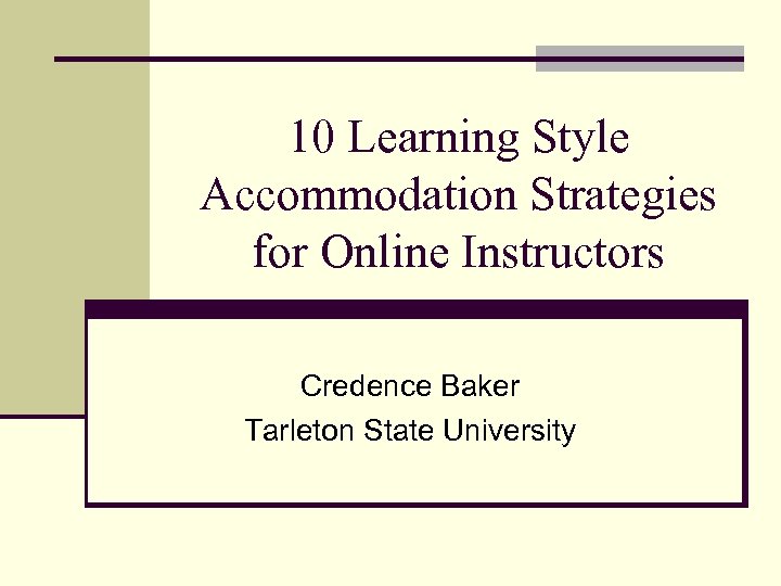 10 Learning Style Accommodation Strategies for Online Instructors Credence Baker Tarleton State University