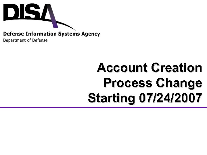 Account Creation Process Change Starting 07/24/2007