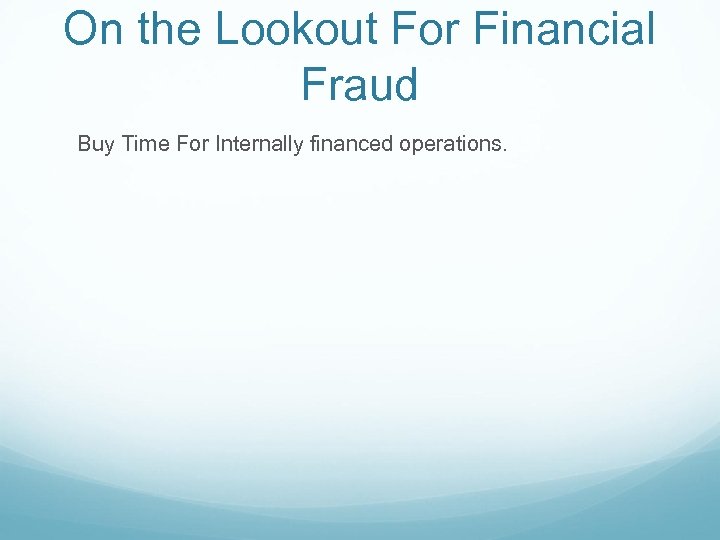 On the Lookout For Financial Fraud Buy Time For Internally financed operations.