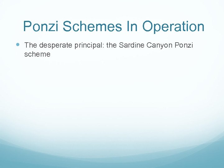 Ponzi Schemes In Operation The desperate principal: the Sardine Canyon Ponzi scheme