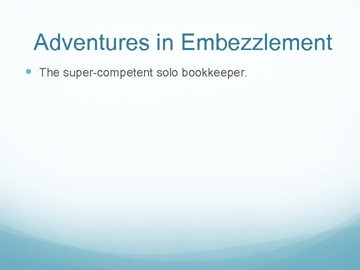 Adventures in Embezzlement The super-competent solo bookkeeper.