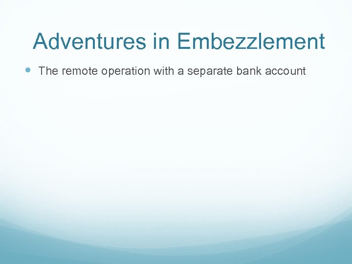 Adventures in Embezzlement The remote operation with a separate bank account