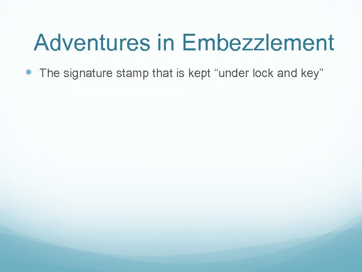 Adventures in Embezzlement The signature stamp that is kept “under lock and key”
