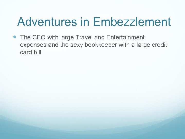 Adventures in Embezzlement The CEO with large Travel and Entertainment expenses and the sexy bookkeeper with a large credit card bill